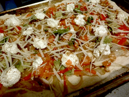caramelized onions, chopped garlic, roasted red pepper, parmesan reggianno, olive oil….Fabulous